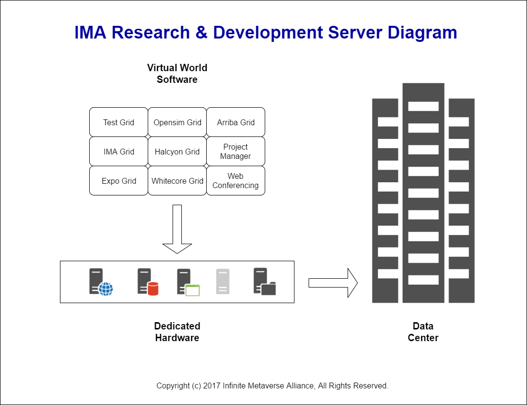 What this means for IMA Members is that there will be test grids to use in testing their scripts and other code on several different platforms. Our Research and Development Working Groups will have a good place to test and develop their projects in a good, fast, stable environment and compare results with the least number of variables. This will also give IMA a place to research how the different platforms react to different load levels and give us the information to make decisions on server design for the future. We hope the end result will be an optimized server hosting platform that will be fast, stable, and secure.